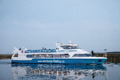 Die großen Panoramafenster auf unseren Schiffen ermöglichen Ihnen eine fast 100%-ige Rundumsicht. Unser Bordrestaurant bietet Ihnen ein umfangreiches Frühstück, Mittags- und Kaffeeangebot. Wir freuen uns auf Ihren Besuch und wünschen Ihnen einen Ausflug der besonderen Art in angenehmer Atmosphäre einer reizvollen, einmaligen Boddenlandschaft.